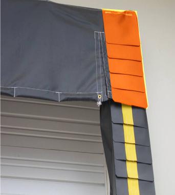 We have decided to put Extra Reinforcement Corner Protector for your dock seals which can be taken on and off using Hook & Loop since the corners are the ones where gets beat up by the trailer all the time. Instead of taking the whole thing down, you can simply replace corner parts only.