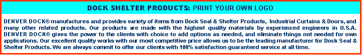 DENVER DOCK¡¯s Dock Seals & Dock Shelters have been proven with the highest quality. All made in U.S.A. Facility serving nationwide and worldwide. Our specialized engineers have been trained for several years of making the highest top quality dock seals and dock shelters.